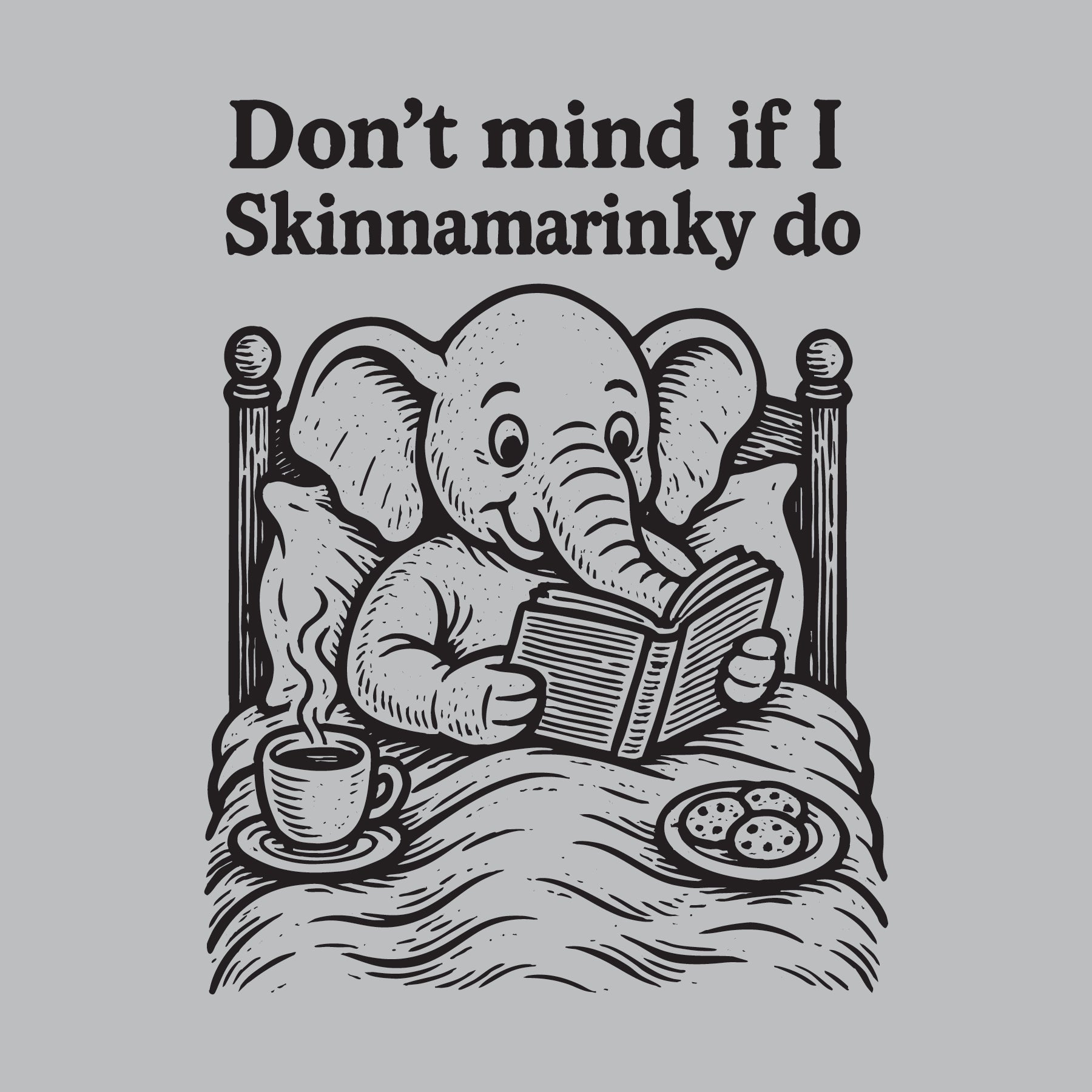 Sometimes you just need to kick back, get cozy, and dive into a good story—elephant-style. This adorable tee features a charming elephant in bed, reading a book, paired with the whimsical phrase “Don’t Mind If I Skinnamarinky Do.”Perfect for book lovers, nap enthusiasts, or anyone who knows how to embrace those chill vibes with a smile.