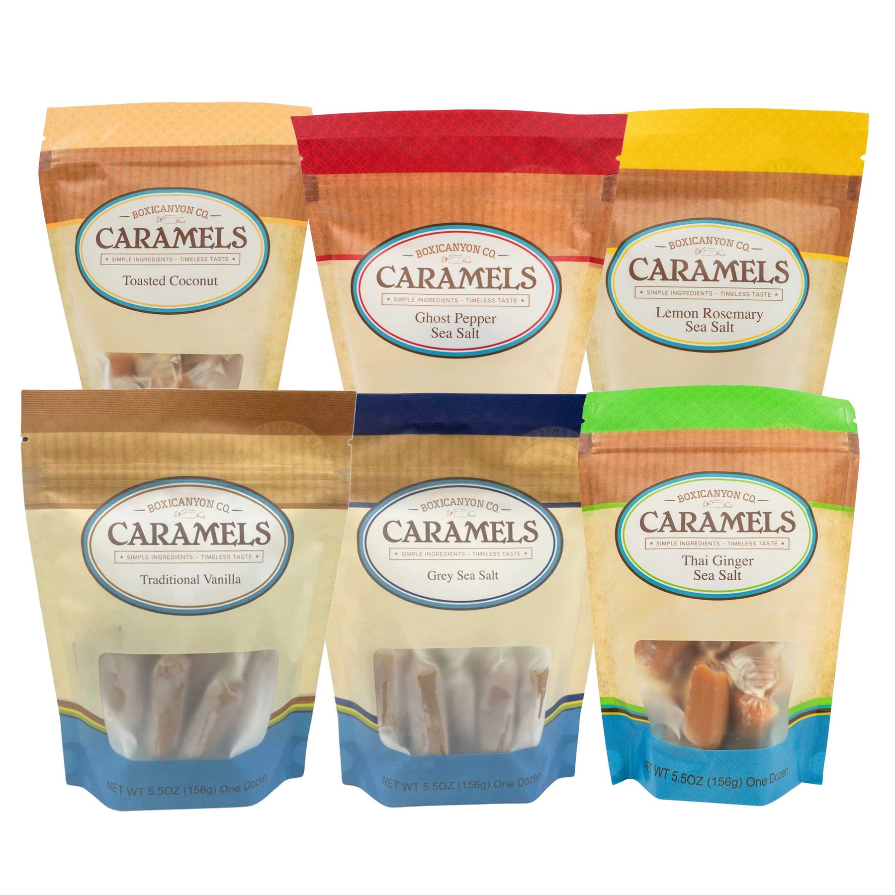 Indulge in handcrafted sweetness with Boxicanyon Co. Caramels! Made in small batches with simple, high-quality ingredients, each caramel delivers rich, buttery flavor and a perfectly smooth texture. This delightful six-pack assortment features a variety of unique flavors to satisfy every craving — from sweet and creamy to bold and spicy.