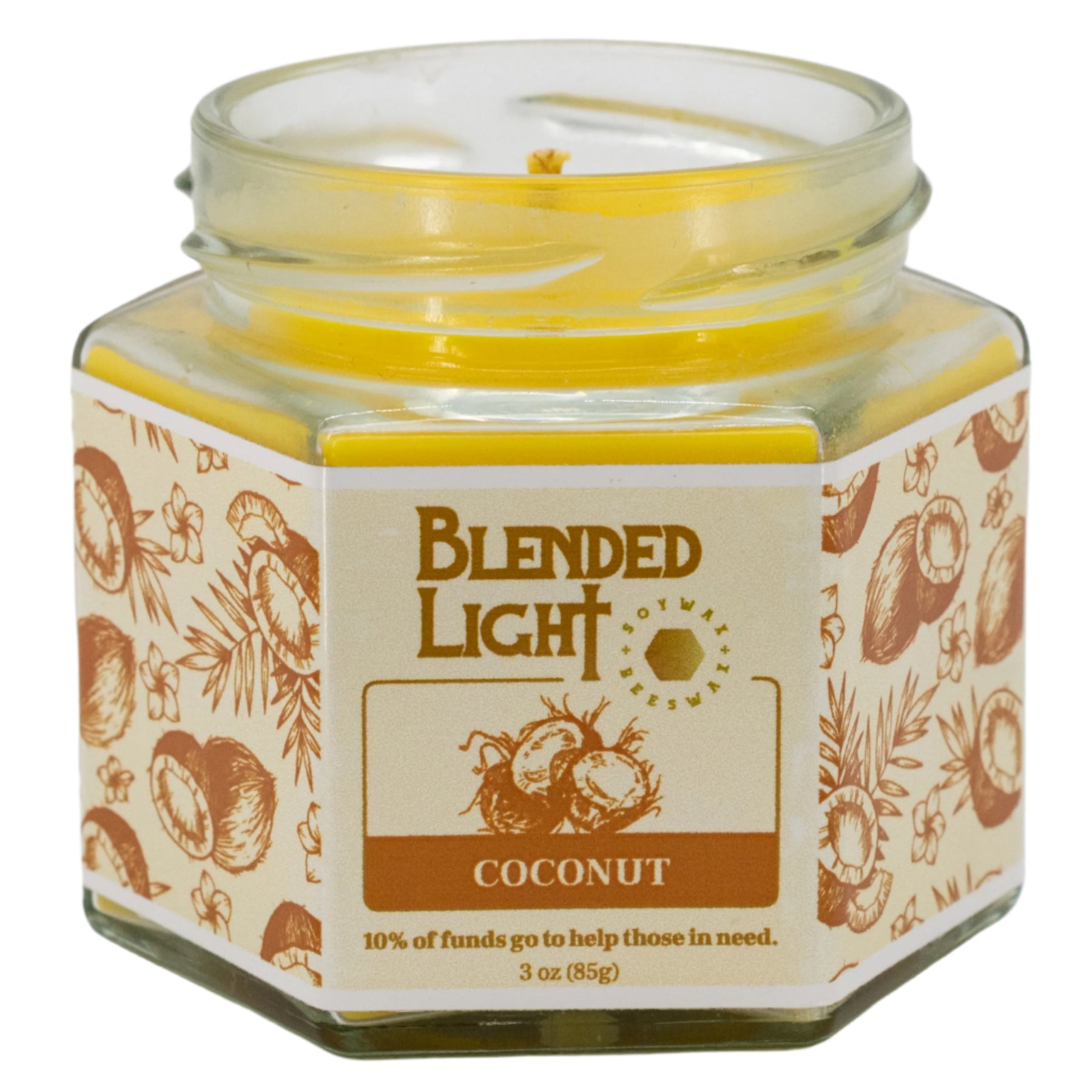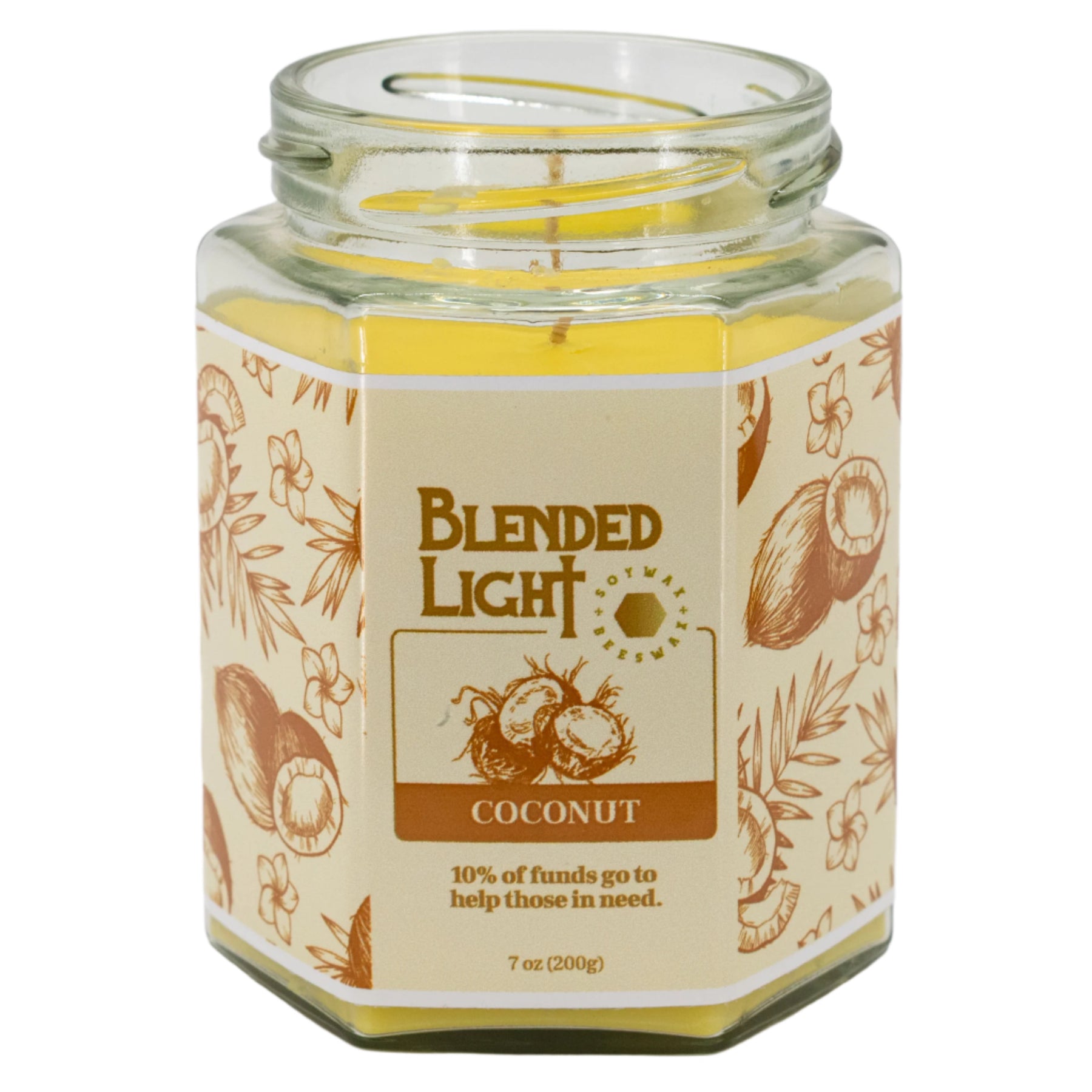 Indulge in the ultimate present for you or a special someone - our coconut scented candle! Handmade with all-natural soy and beeswax, this candle's long-lasting wick will fill any room with a delightful coconut aroma, reminiscent of a freshly brewed cup. Don't miss out on your choice of 3 oz. or 7 oz. sizes.