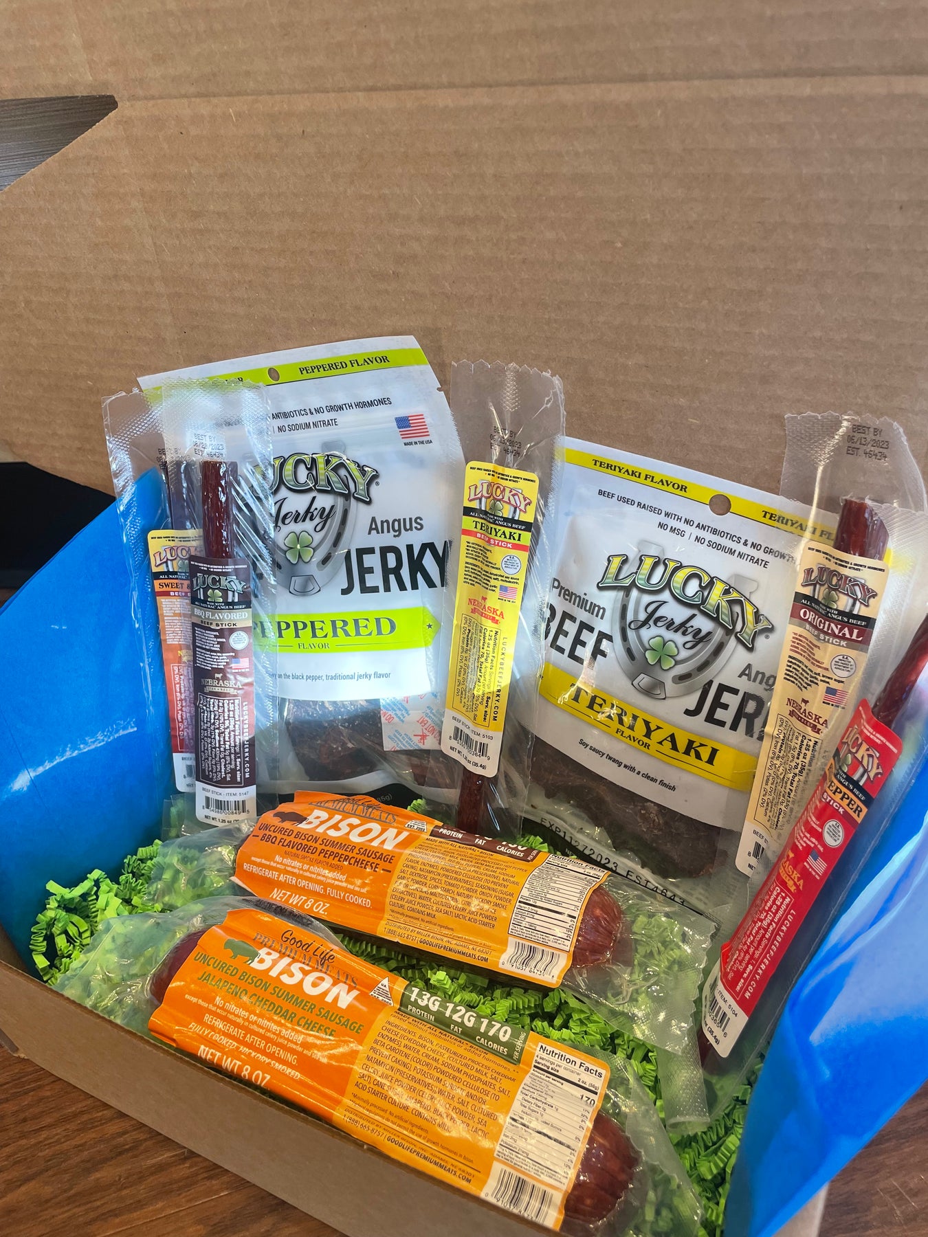 What's better than Nebraska raised meat? 🤔 The answer is simple, NOTHING! This gift box is full of our most popular beef sticks, jerky, and summer sausage. Don۪'t expect gas station jerky to ever taste the same again! 😋