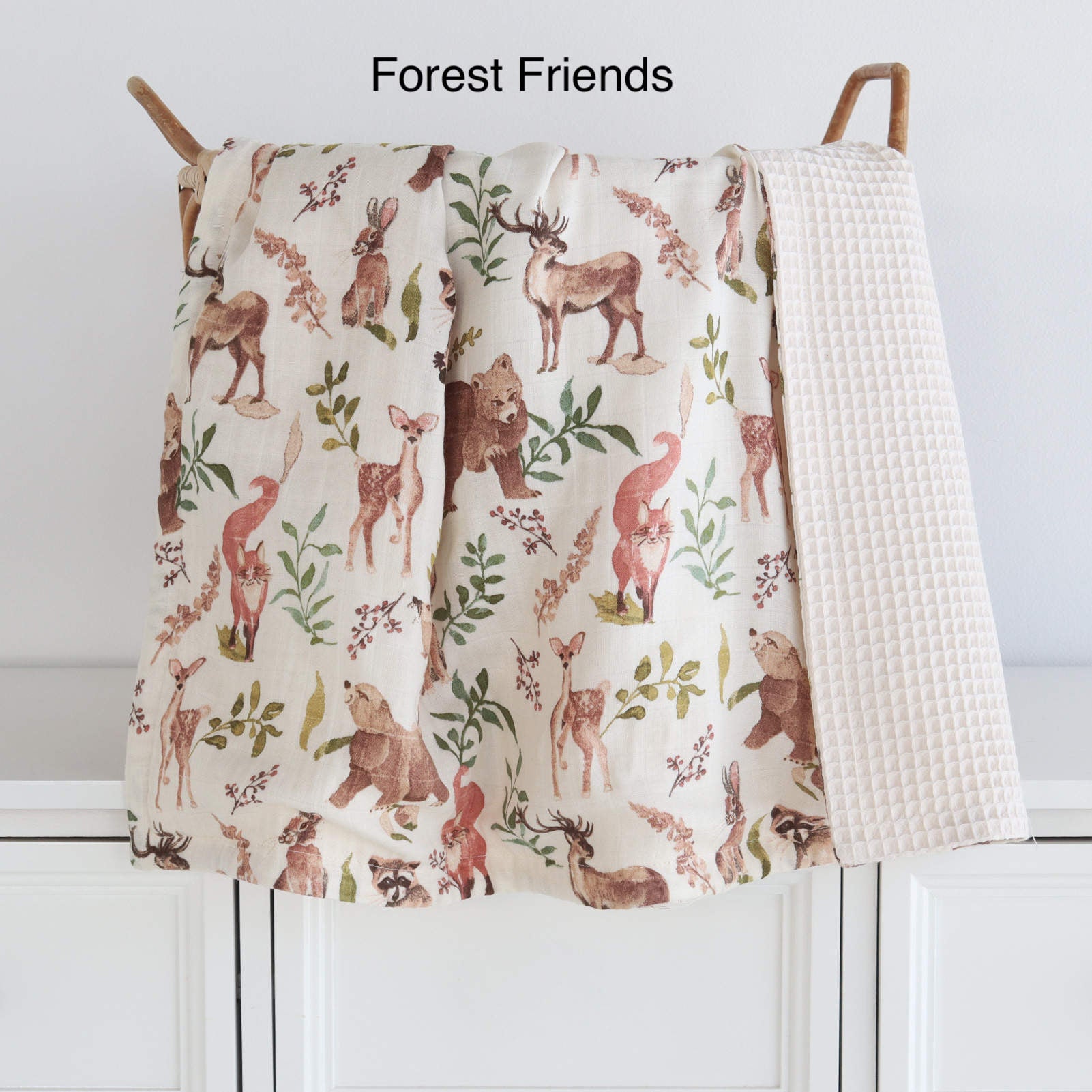 Add a cheerful touch to your nursery with our Printed Blanket Collection! Each blanket showcases a fun, eye-catching design—like rainbows, eucalyptus, and more—on super-soft, hypoallergenic fabric. Made for both style and everyday use, these blankets are a go-to pick for parents and thoughtful gift-givers.