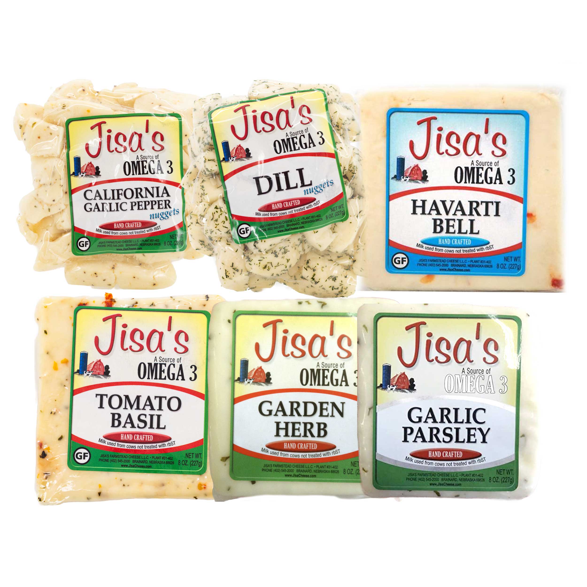 This is not the store cheese... you can feel better about eating Jisa Cheese. My favorites are the smoked bacon, spinach artichoke and california garlic pepper. Yum!