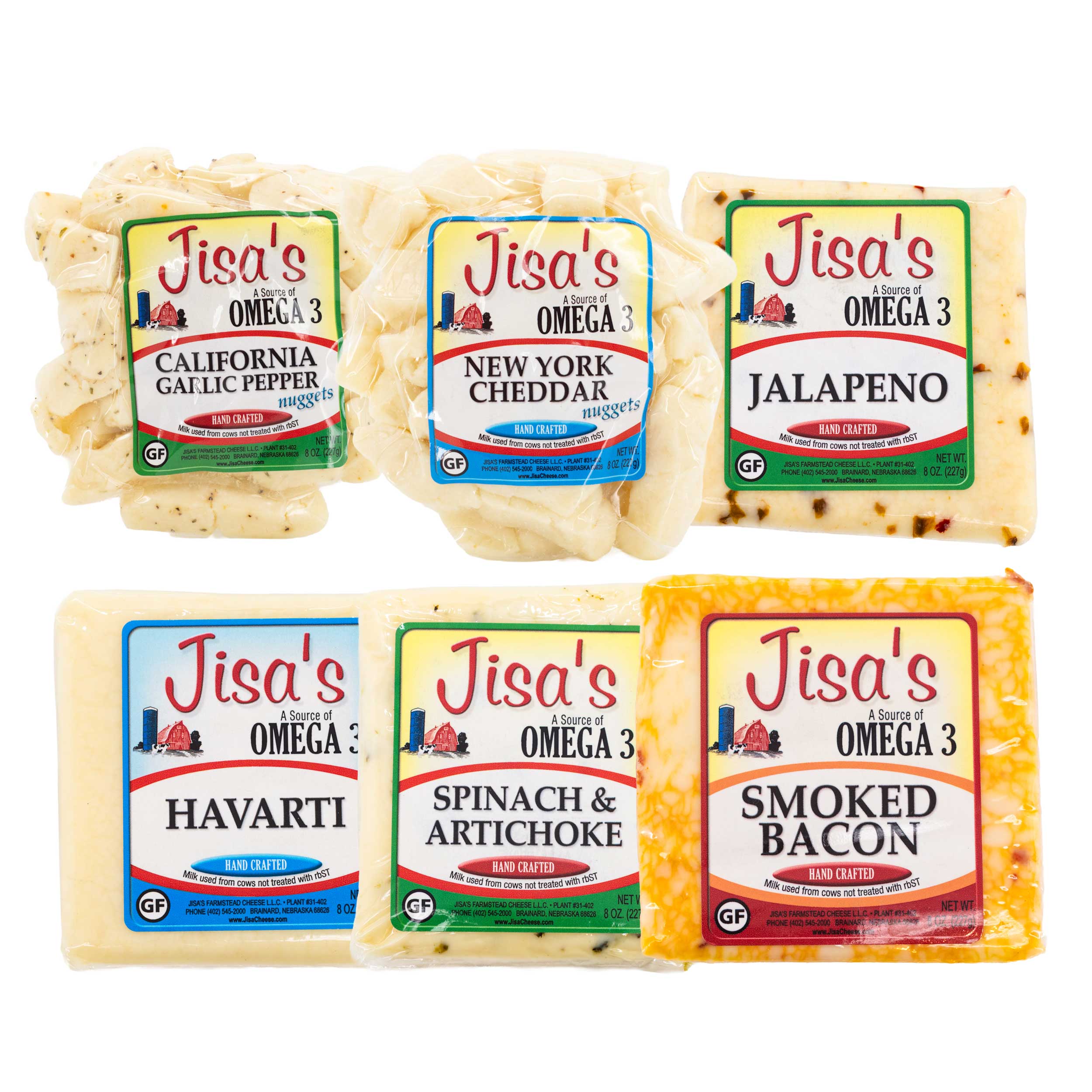 In 1946, Lad Jisa started a dairy farm with just a few Holsteins. The dairy now milks over 300 Holstein cows and Lad’s son Dave now operates the dairy that provides the milk for Jisa Cheese. The idea to build a cheese factory came about when milk prices dropped and small dairies across the Midwest struggled to stay afloat. Working with the University of Nebraska, Dave learned how make cheese. Jisa’s Farmstead Cheese became a reality in the spring of 2005 at their 6,000 square foot plant near the farm. Their recipe for cheese involves milk, time and temperature using their own pasteurized whole milk. They uphold the highest standards in making sure that their cheese is made in a clean and sanitized environment using milk from cows not treated with rbST. Based in Brainard, Nebraska.