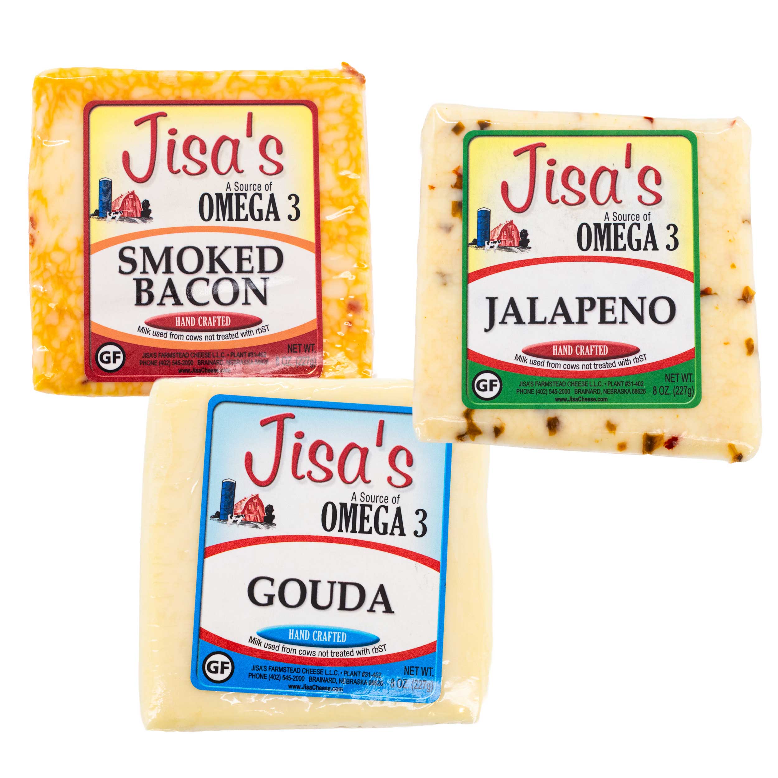 Indulge in the savory flavors of Nebraska with this handcrafted Cheese Nuggets Sampler from Jisa's Farmstead. This trio includes two award-winning varieties and a classic dill flavor, perfect for snacking, charcuterie boards, or gifting. Made with care and aged for flavor, each 8 oz. bag offers a rich, satisfying experience.