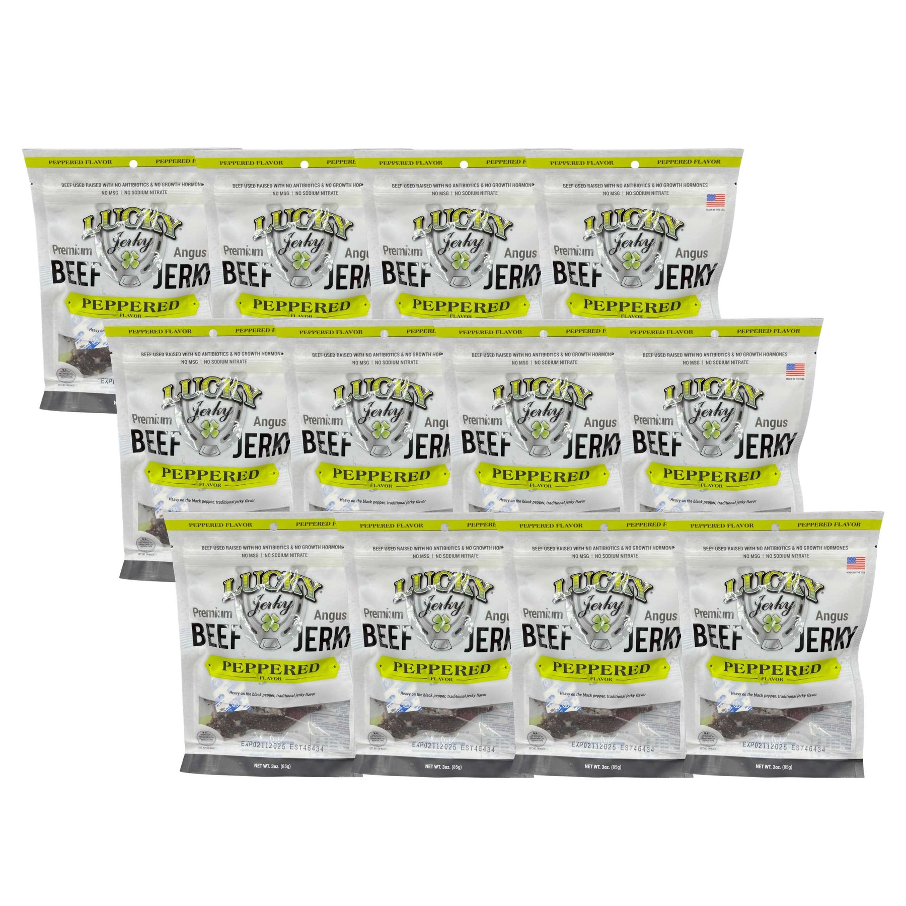 Indulge in the bold, exciting flavor of Lucky Beef Jerky's Peppered variety. With a perfect balance of tender beef cuts, hand-selected from single source cattle in Nebraska, and expertly seasoned with just the right amount of black pepper, this snack is sure to satisfy your cravings. Take it with you on-the-go for a flavorful and energizing snack anytime, anywhere!