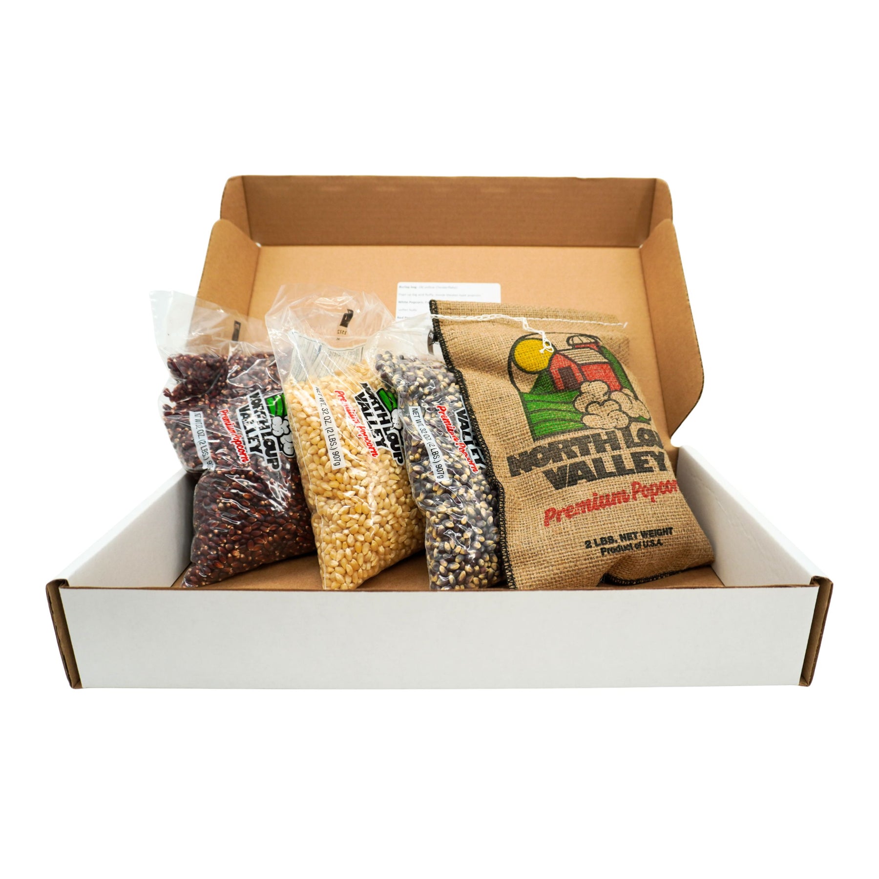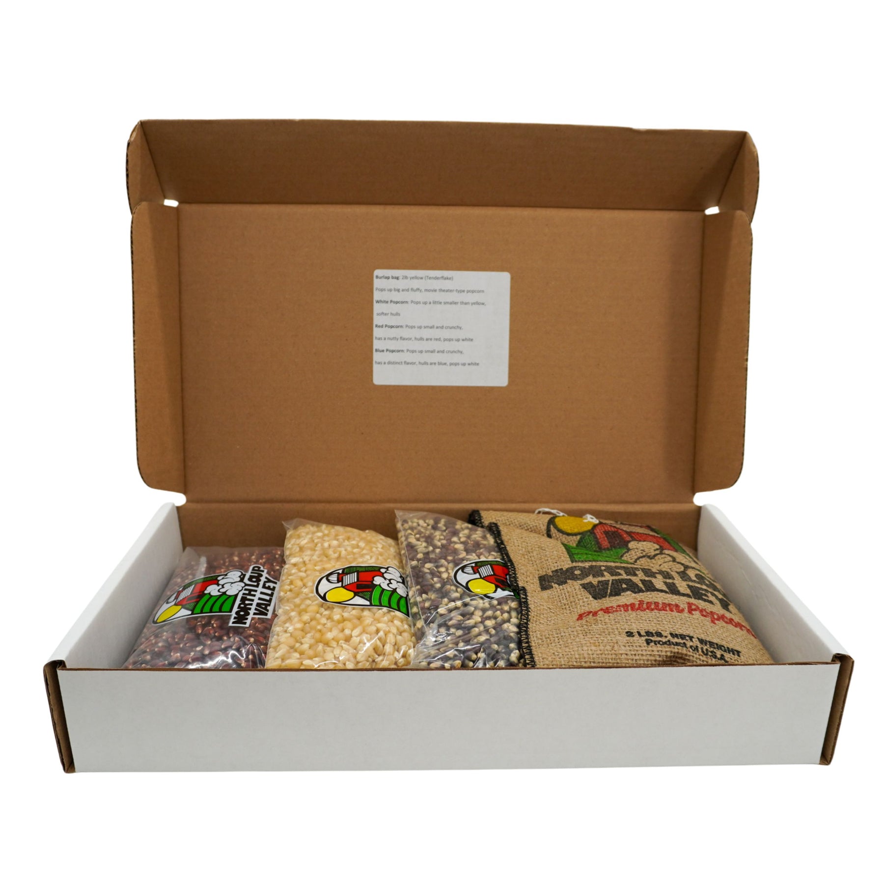 This bundle includes a 2 lb. bag of our yellow butterfly popcorn in their signature North Loup Valley burlap bag, along with 2 lb. bags of our red, white, and blue popcorn, packed neatly in a convenient gift box. It’s a delicious, nutritious and colorful combination!