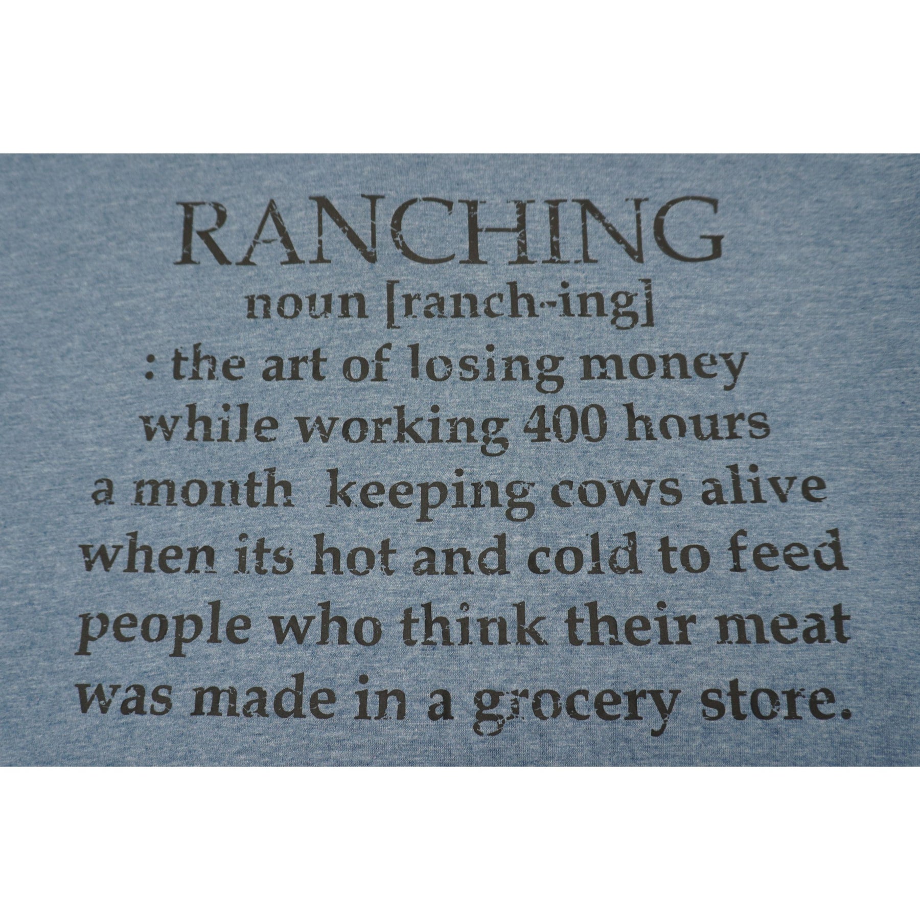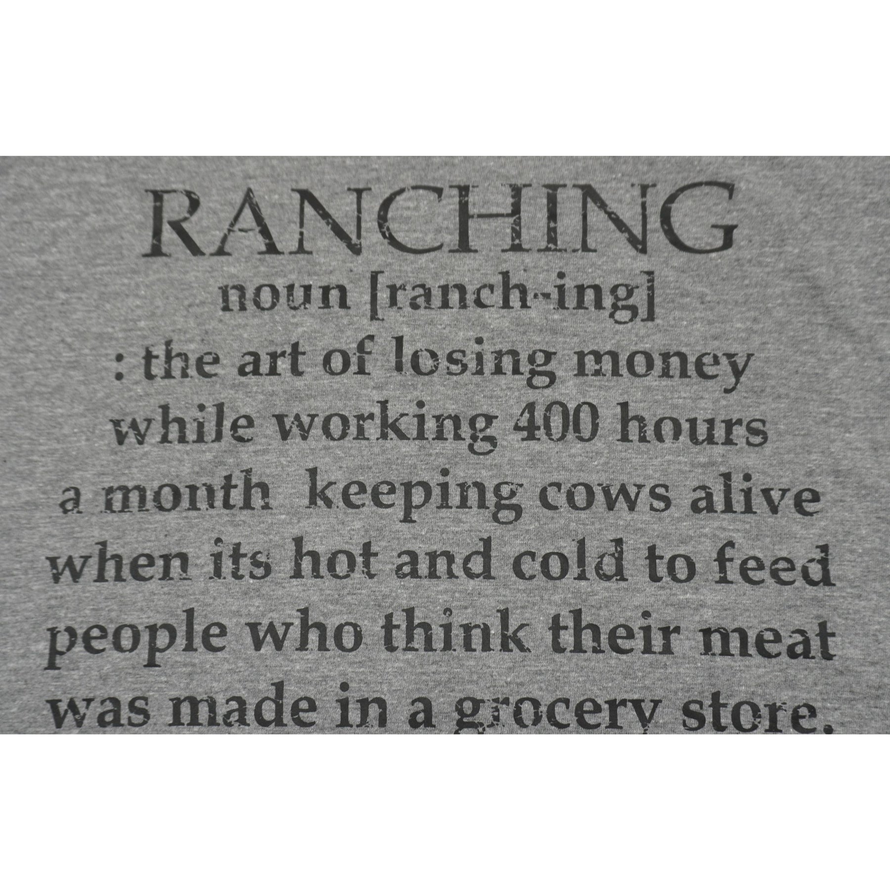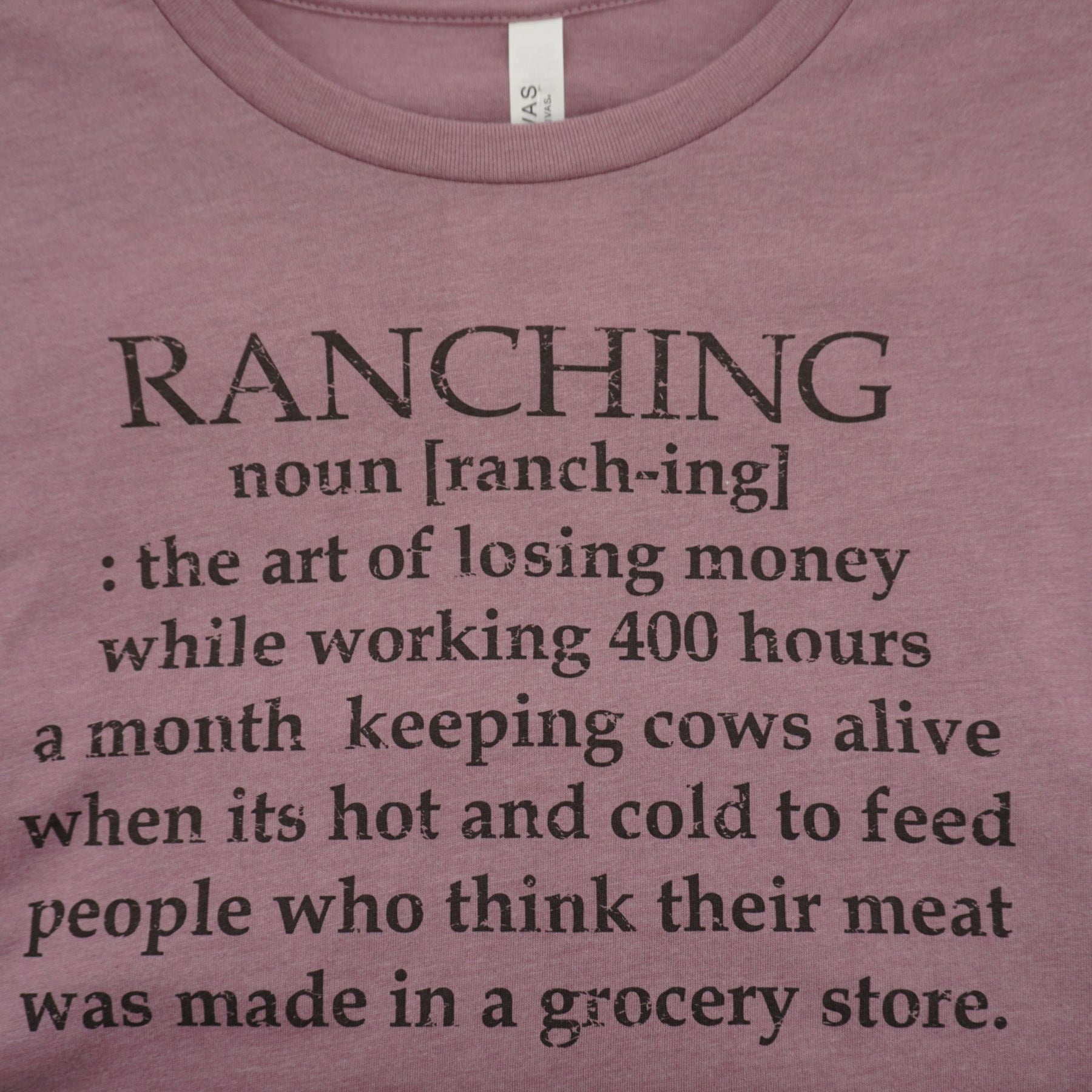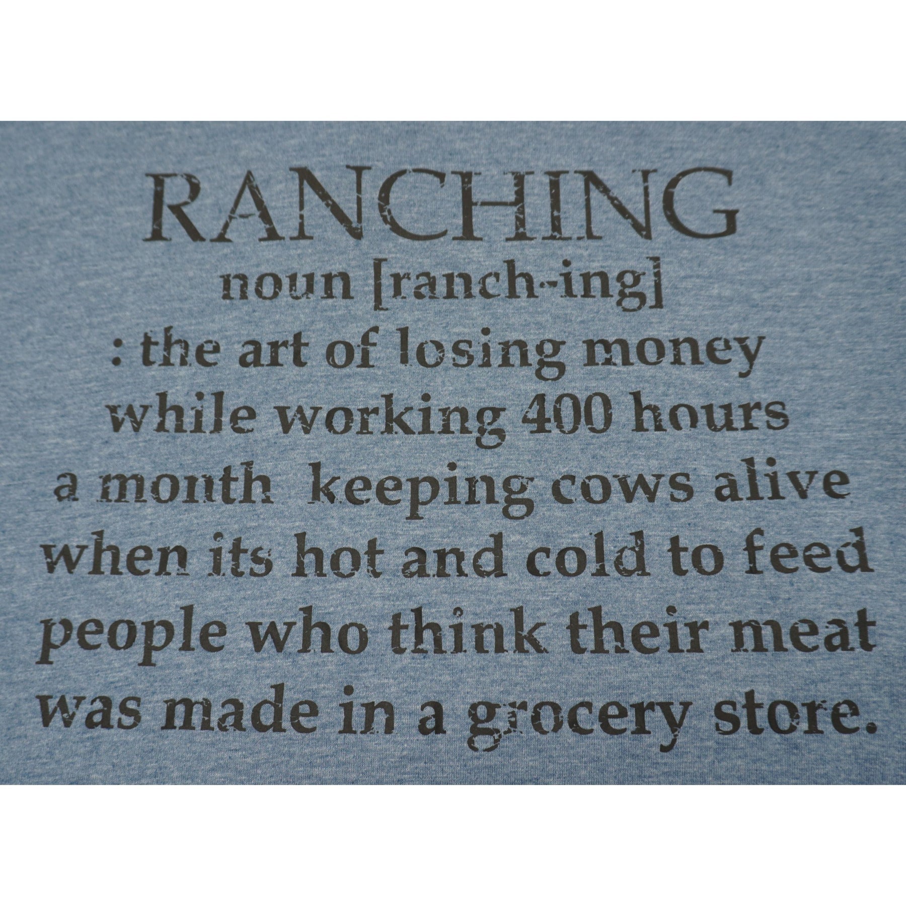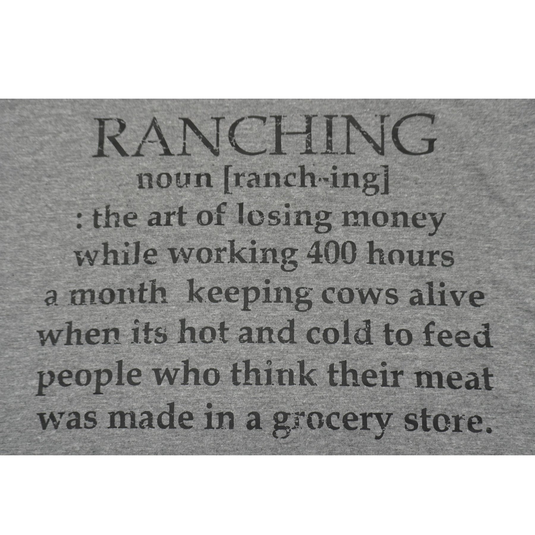 Celebrate the gritty humor of ranch life with this witty Ranching definition tee. Printed on a soft, durable Gildan Softstyle® T-Shirt, it’s perfect for hardworking ranchers and those who appreciate the dedication it takes to keep the herd (and humor) alive. The tongue-in-cheek definition captures the essence of early mornings, long days, unpredictable weather, and the pride of feeding the world—even those who think meat comes from a grocery store.