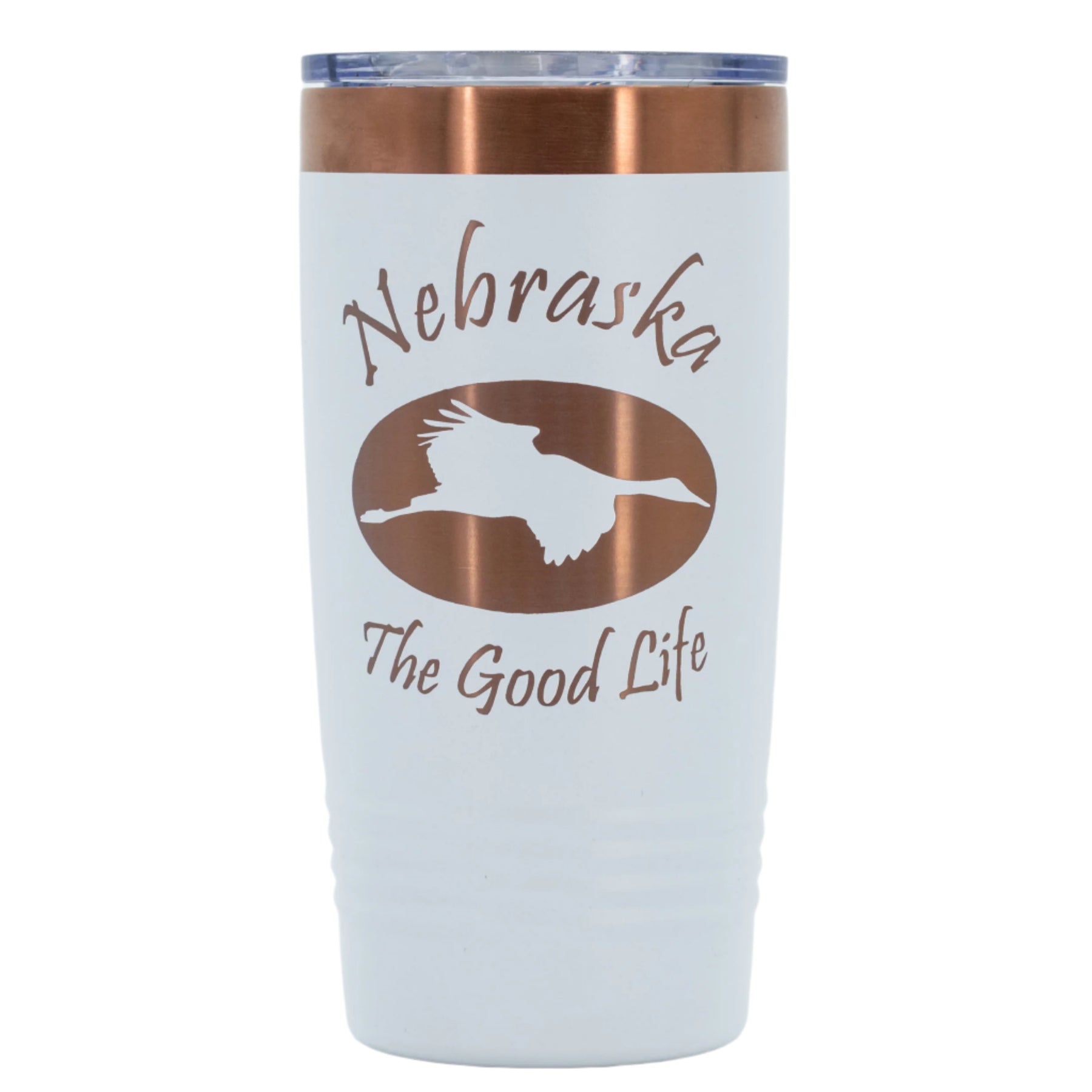 Elevate your on-the-go routine with this stylish and functional 20 oz. stainless steel tumbler, featuring elegant rose gold and white accents. Highlighted by a beautifully detailed Sandhill crane design, it’s a perfect choice for nature lovers and birding enthusiasts alike.