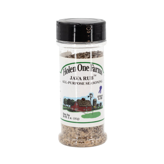 Something magical happens when the blend of aromatic spices, peppers, turbinado sugar, and coffee is rubbed into ribs, roasts, steaks, or chicken before grilling. The coffee enhances the natural meat flavors, leaving the grilled meat a beautiful coffee brown. Holen One Farms has revived this tried and true classic. It's one of their family favorites, and they think you'll like it too. 5 oz. All natural. No MSG.