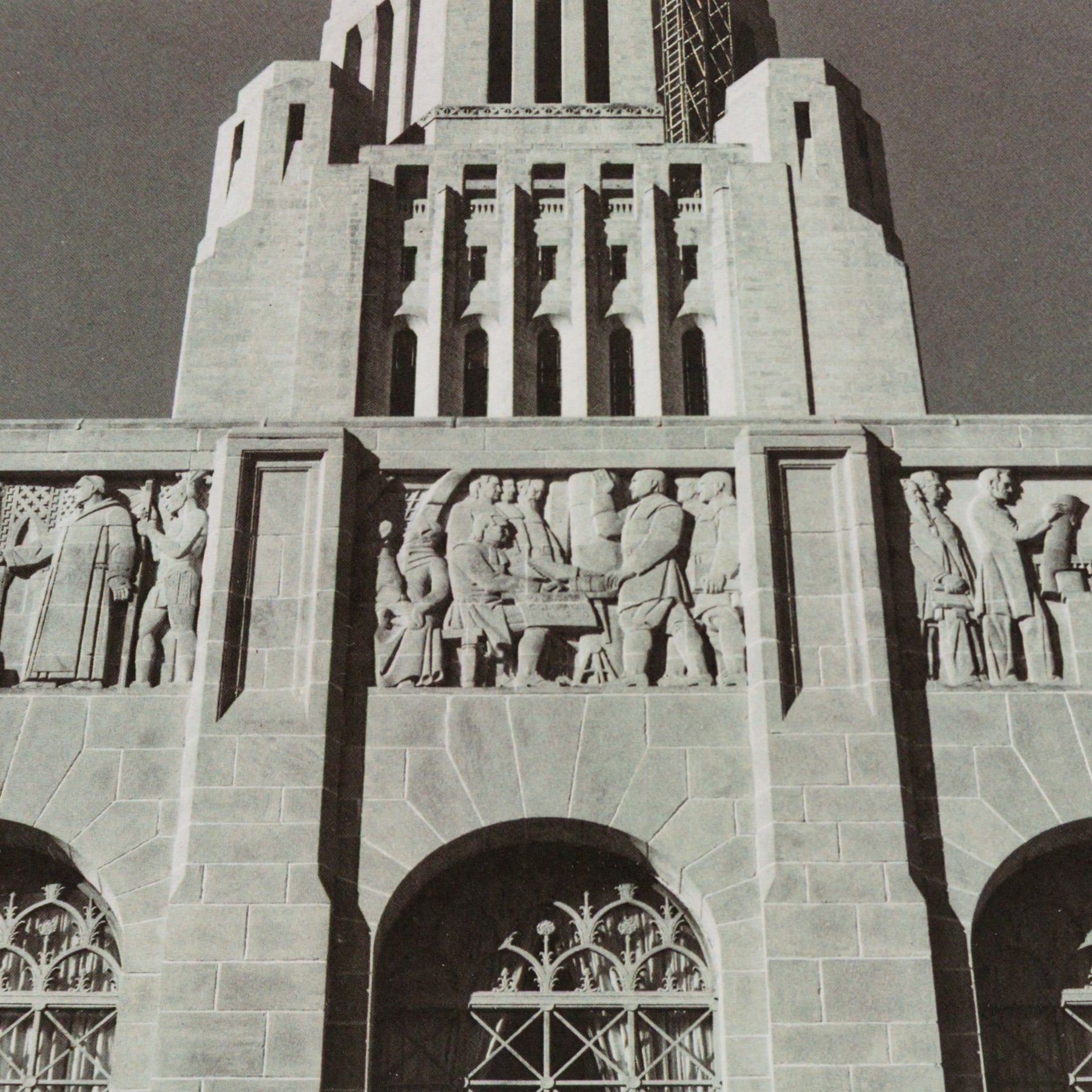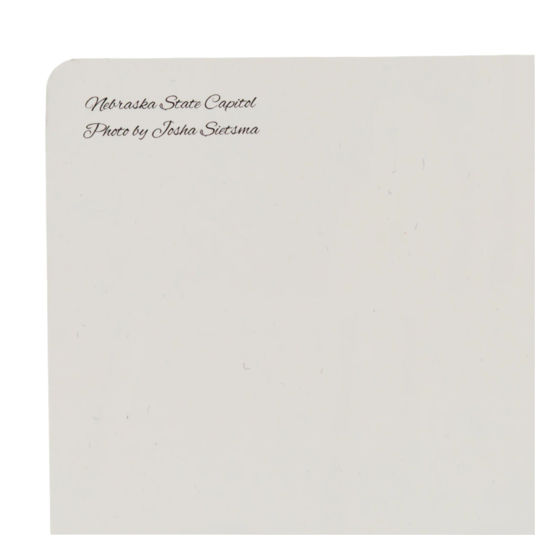 Originally designed as a Christmas card, this striking illustration was eventually framed in the Nebraska State Capitol—now reimagined as a postcard. Featuring an inspiring quote by Hartley Burr Alexander, whose legacy is tied to the Capitol itself, this piece blends history, art, and meaning in one collectible design.