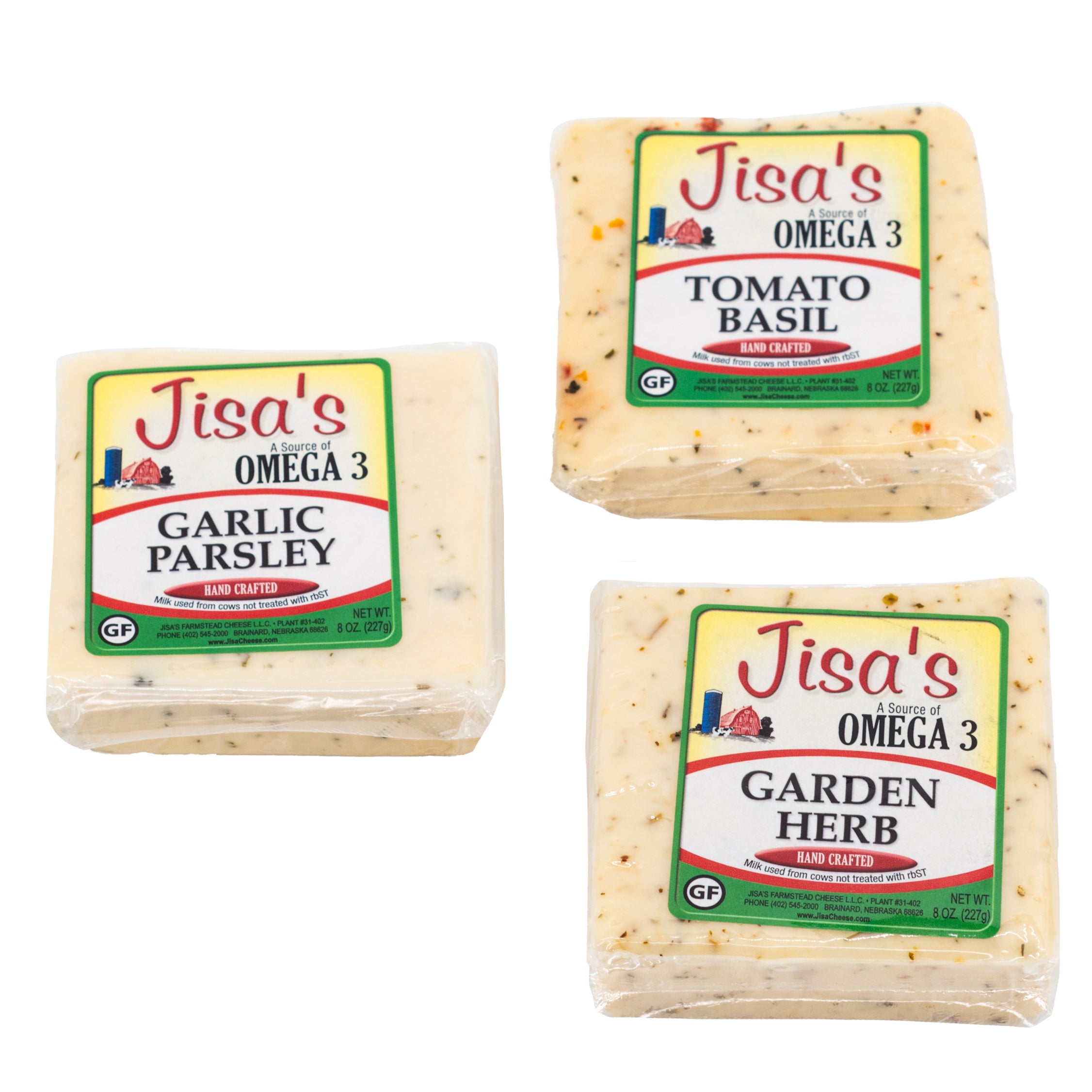 Experience the mouth-watering flavors of Jisa's Farmstead Cheese with our Cheddar Cheese Variety Set! Hand-crafted with care, this set includes 3 distinct and delicious flavors that will satisfy all of your cheese cravings. Don't miss out on this delectable assortment that is sure to please your taste buds. Order now and elevate your cheese game to a whole new level!