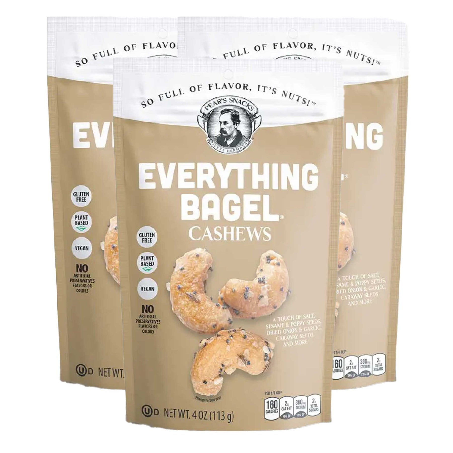 Experience the irresistible flavor of Everything Bagel seasoning in a whole new way! Our 4 oz. bag of savory, bold cashews is infused with a perfect blend of crunchy sesame, caraway, and poppy seeds, along with the delicious taste of onion and garlic. Trust us, you won't be able to resist this mouth-watering snack mix!