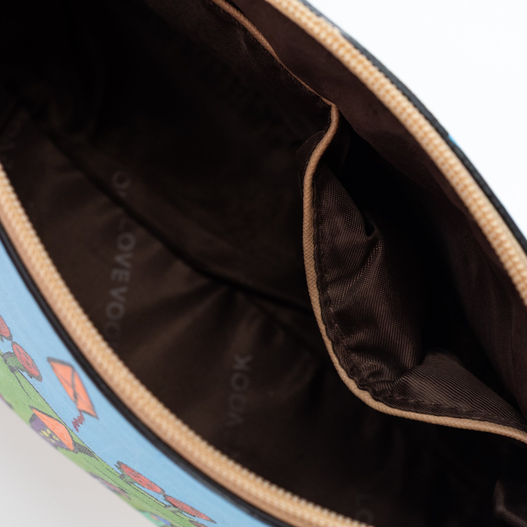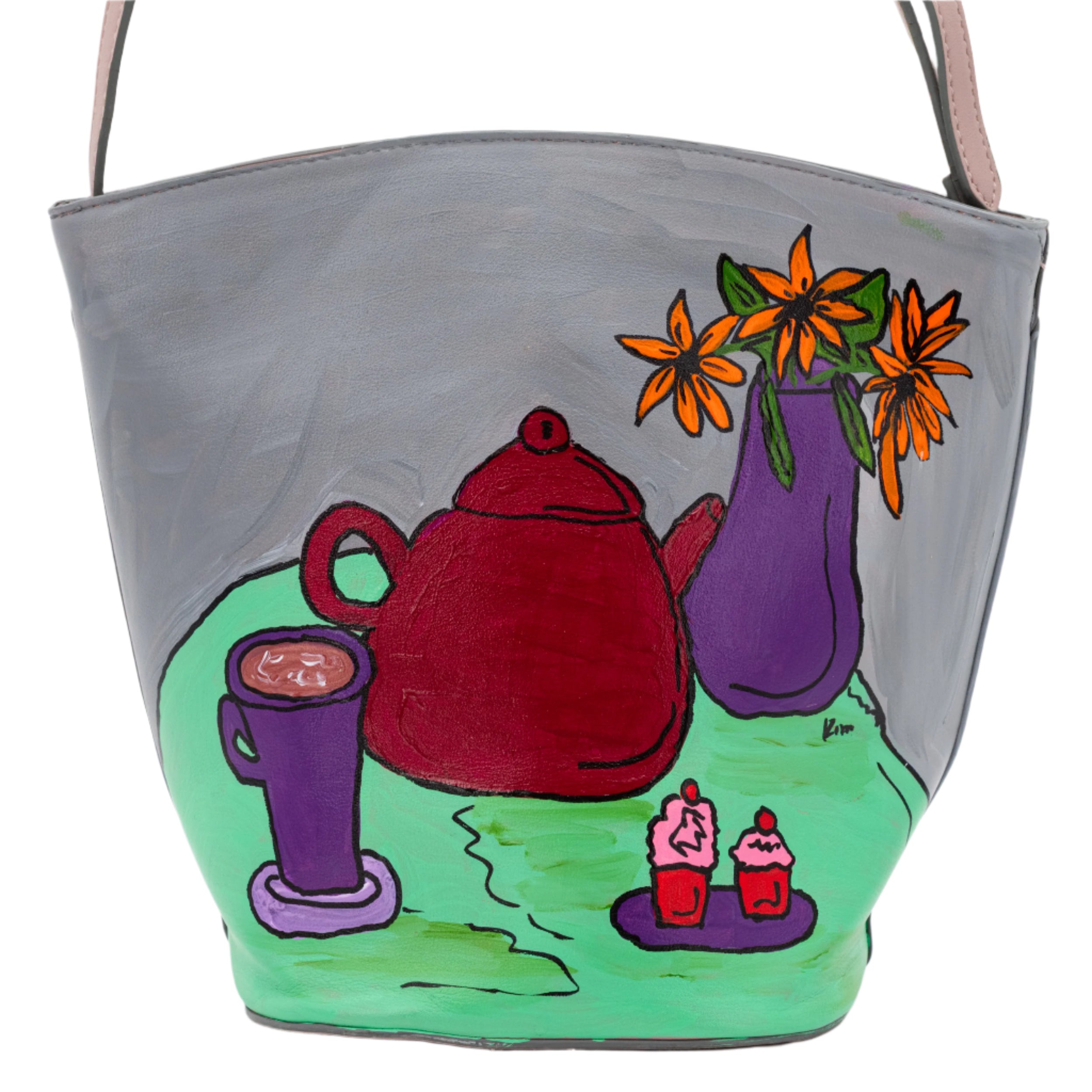 Bring art into your everyday with this one-of-a-kind hand-painted purse. Crafted from a repurposed bag and transformed into a wearable canvas, this unique piece features a charming village scene—complete with tiny houses, winding paths, and cozy details that tell a story. Each brushstroke is a testament to creativity and sustainability, making this purse not just a fashion statement, but a celebration of craftsmanship and conscious living. Perfect for those who love meaningful style with a touch of whimsy.