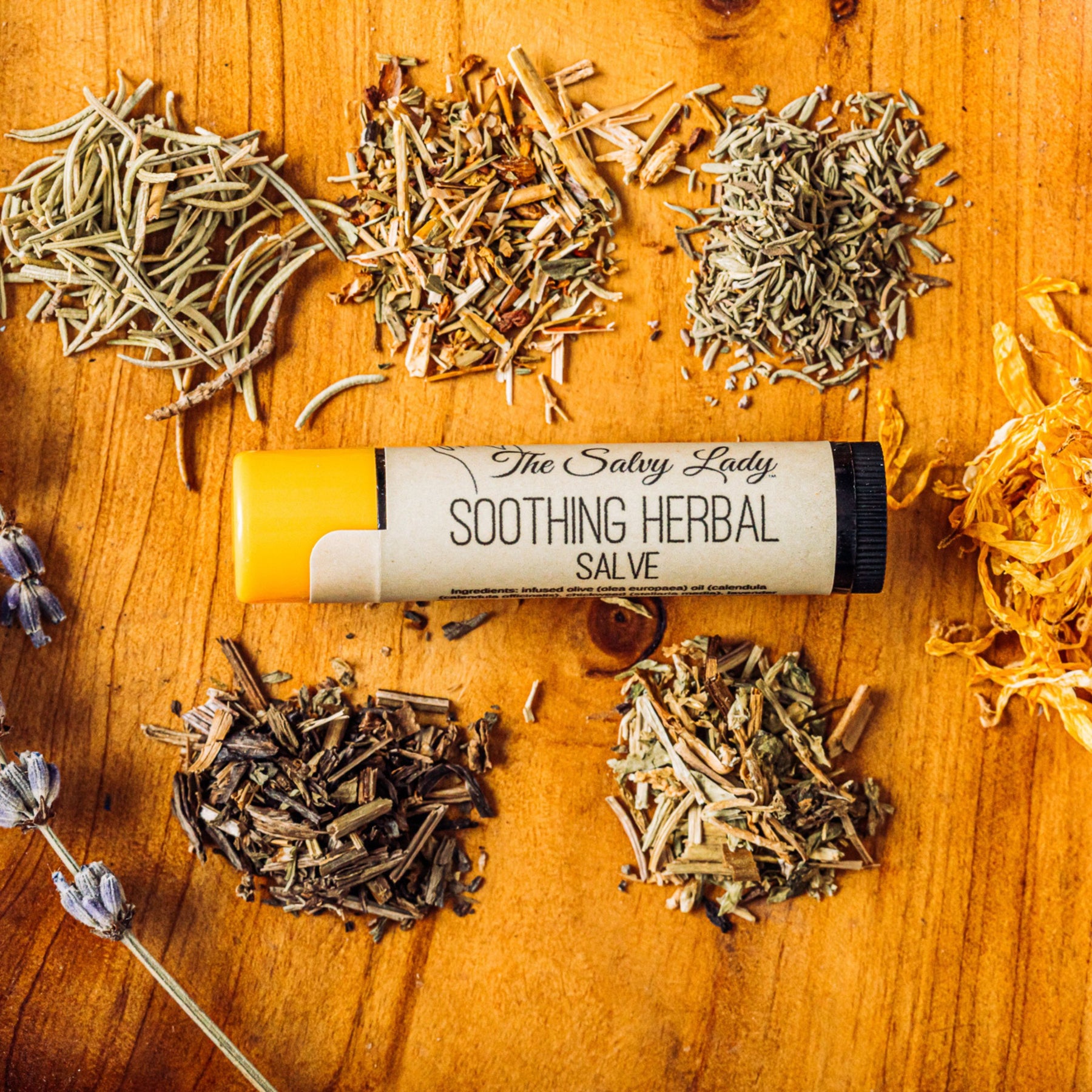 All-Purpose Salve: Care for your skin naturally, and on the go, with our Soothing Herbal Salve Stick. We infuse olive oil with a calming blend of seven carefully selected herbs and flowers known for their natural antibacterial, anti-inflammatory, and itch soothing properties. This all-purpose salve is perfect for dry patches, minor cuts, scrapes, and irritations, and bug bites.