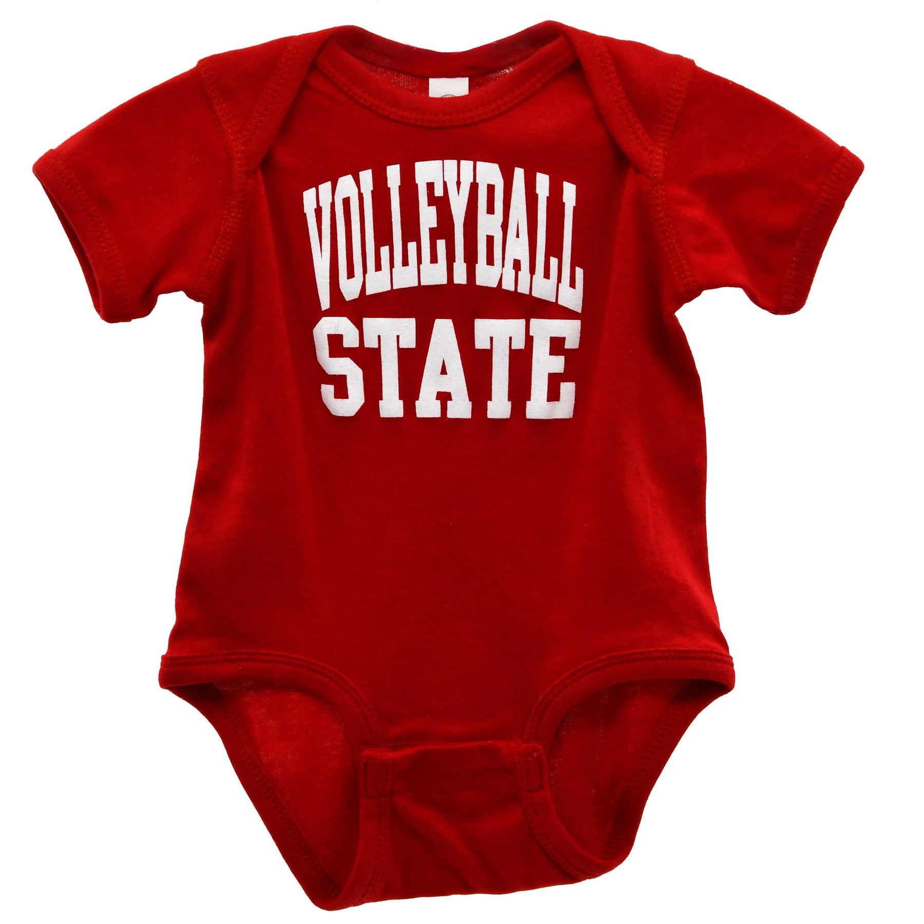 Start them young with Nebraska volleyball pride in this adorable “Volleyball State” baby onesie. Designed in bold red with classic white lettering, this onesie celebrates Nebraska’s legendary volleyball tradition while keeping your little fan comfy and cozy. Made for everyday wear, it’s soft, practical, and perfect for game days, photos, or gifting.