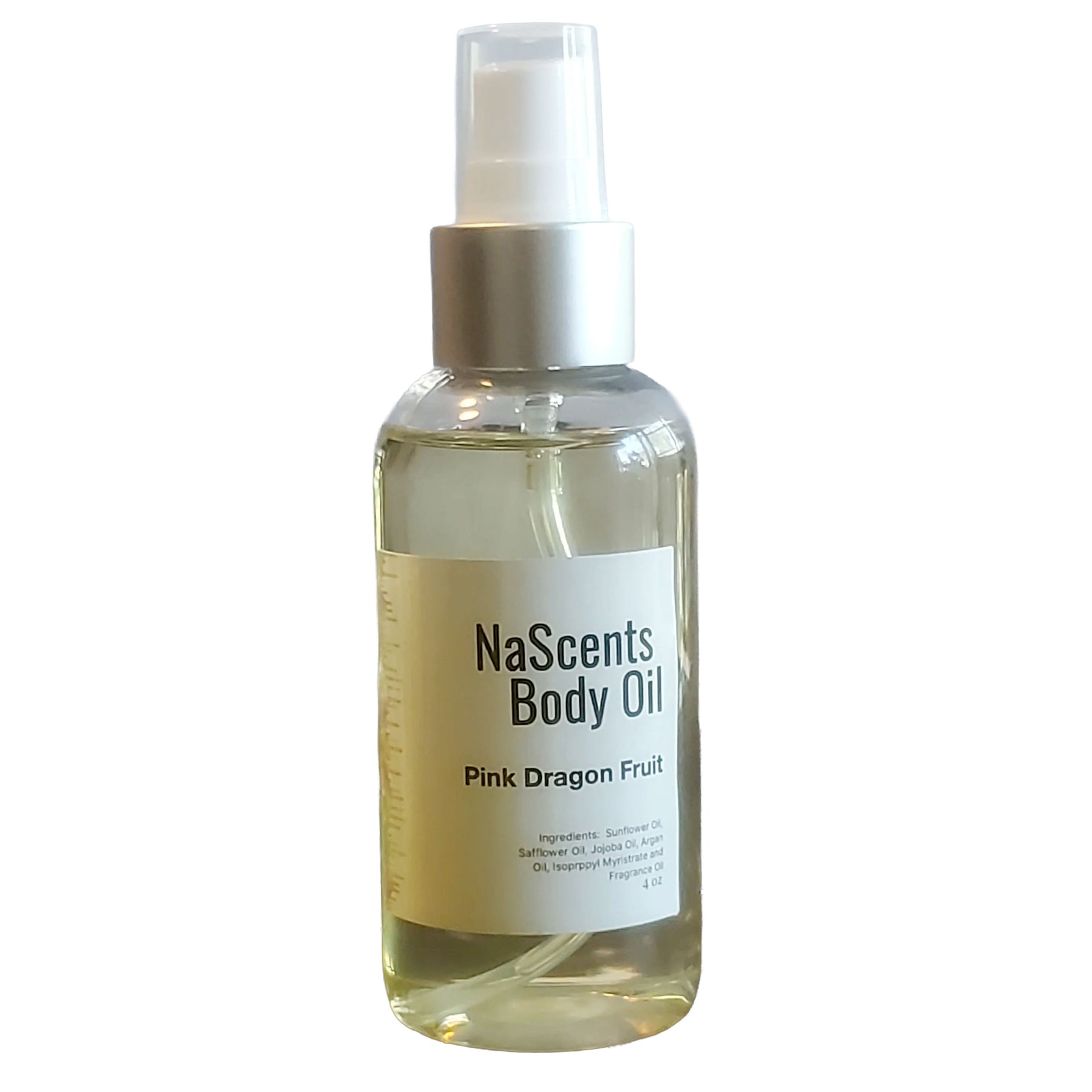 Pamper your skin with NaScents Body Oil a luxurious blend crafted to hydrate, soften, and rejuvenate. Infused with nourishing oils like sunflower, safflower, jojoba, and argan, this lightweight formula locks in moisture without leaving a greasy feel. The exotic, fruity aroma of pink dragon fruit transports your senses to a tropical paradise, creating a spa-like experience right at home. Perfect for daily hydration, massage, or after-bath indulgence, this body oil leaves your skin silky smooth and radiant.