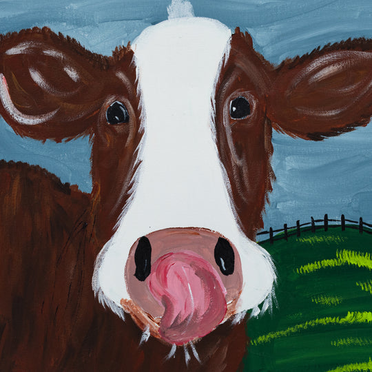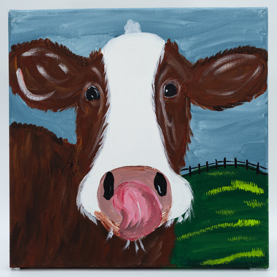 Embrace the rustic elegance of Melissa, The Brown & White Cow, beautifully hand-painted on canvas by The Painted Attic. With rich detail and warm tones, this charming artwork brings a serene countryside vibe to any room—perfect for adding a touch of timeless beauty and heart to your home décor.