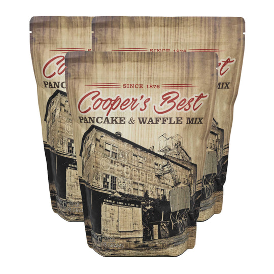 Includes 3 bags of Cooper's Pancake Mix, each 2.5 lb.