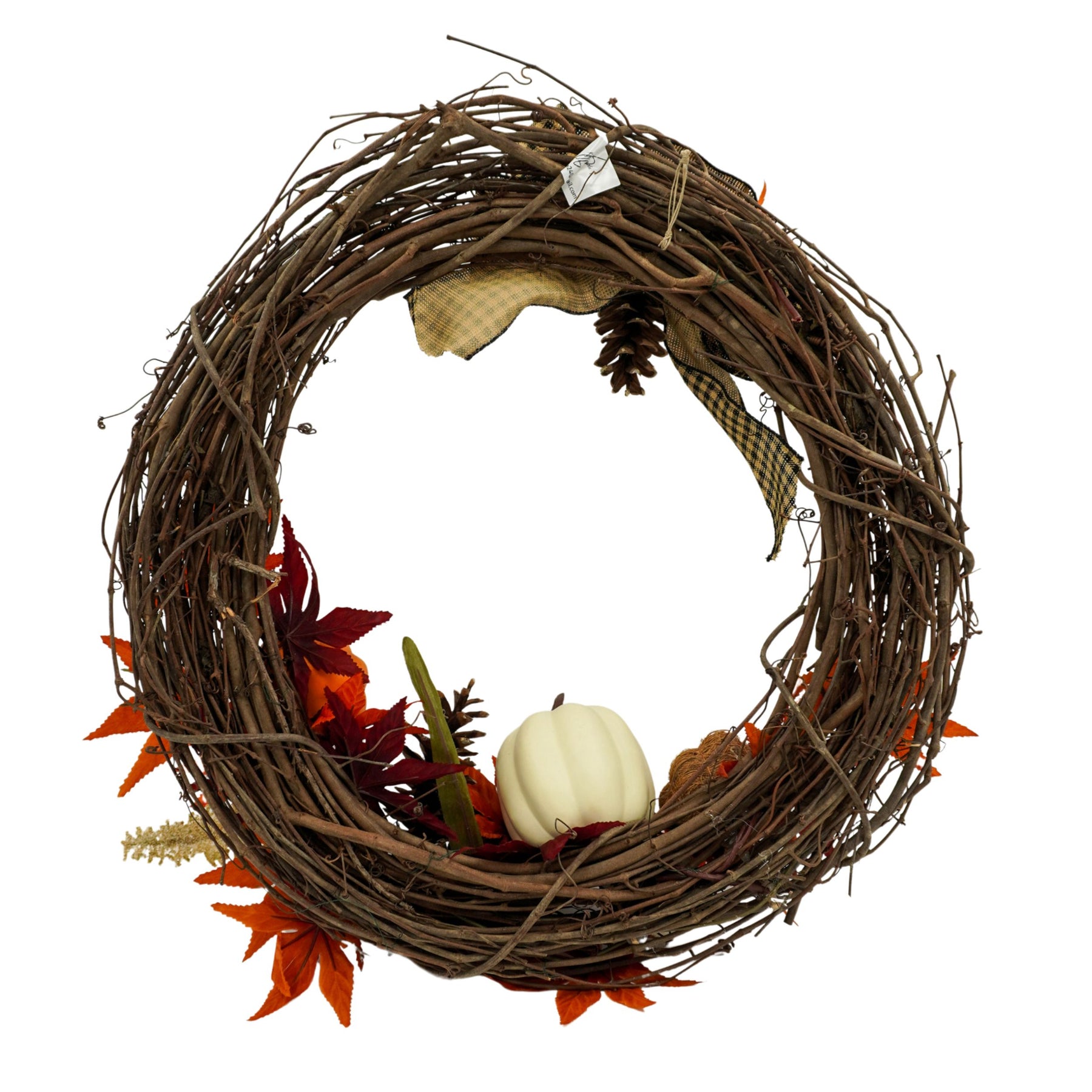 Features lifelike leaves, pinecones, and mini pumpkins