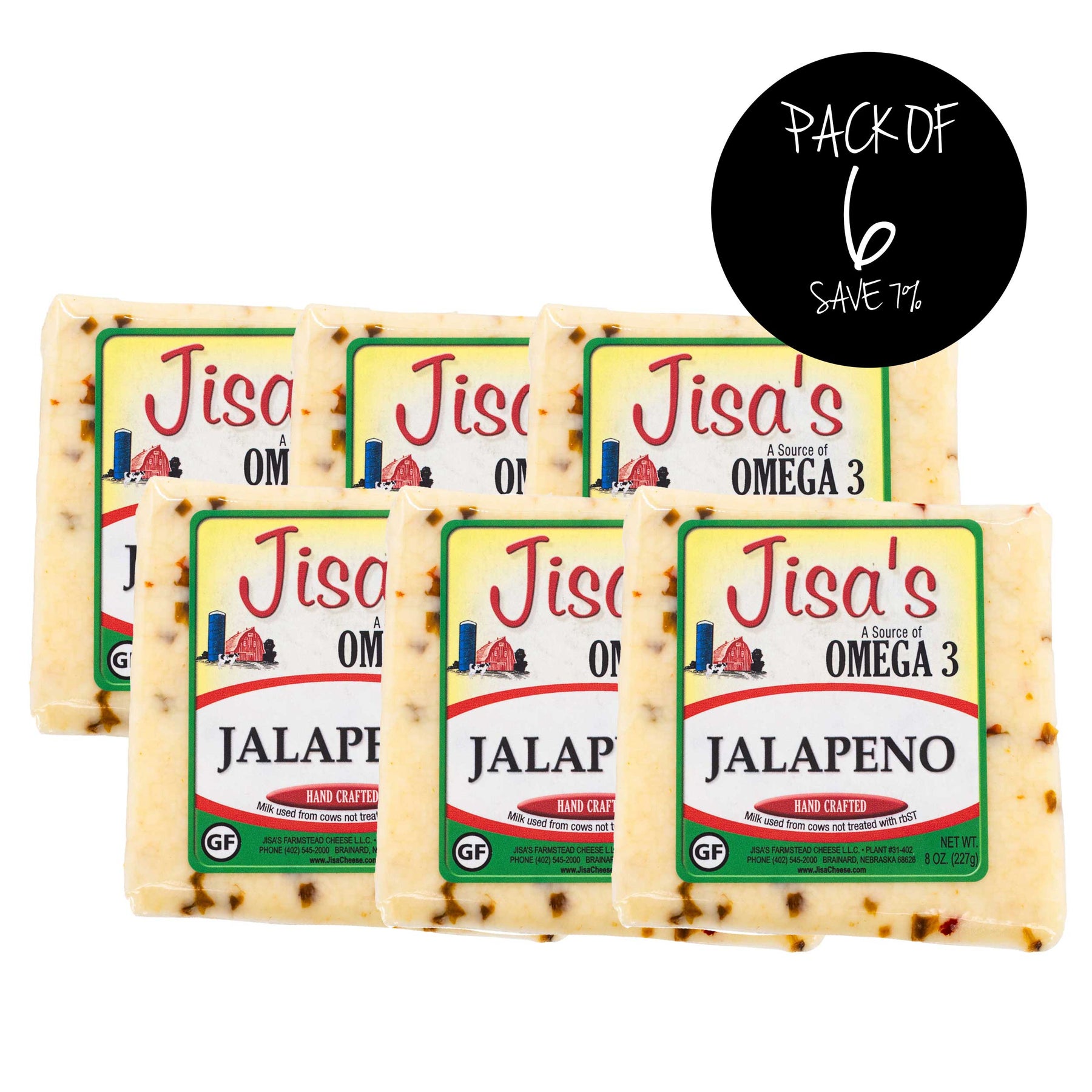 Spice up your cheese experience with this jalapeno artisan cheese, a bold blend of creamy, handcrafted cheese infused with just the right amount of zesty jalapeño peppers. This flavorful fusion delivers a smooth, buttery texture with a lively kick of heat, making it the perfect choice for those who crave a little spice. Whether melted into a gooey queso dip, sliced onto burgers, or paired with crackers for a fiery snack, this artisan cheese adds a deliciously spicy twist to any dish. Made with high-quality ingredients and expert craftsmanship, it's a must-try for cheese lovers who enjoy a little heat! Great source of Omega 3.