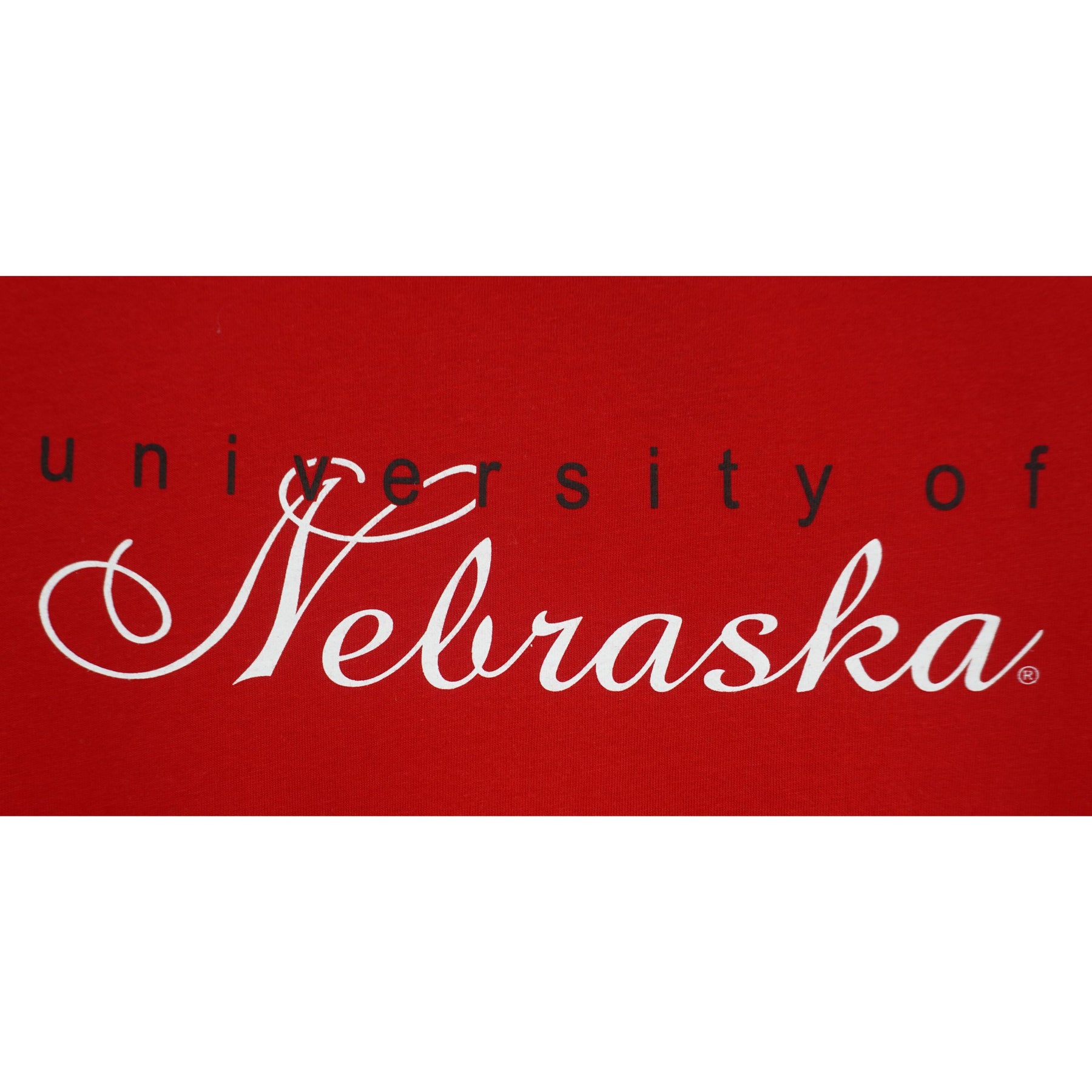 Show off your Husker pride with a stylish twist in this red t-shirt featuring “University of Nebraska” in elegant cursive lettering. Soft, breathable fabric and a comfortable fit make it perfect for game days, campus life, or everyday wear. With its simple yet classy design, this tee is a timeless addition to any Nebraska fan’s wardrobe.
