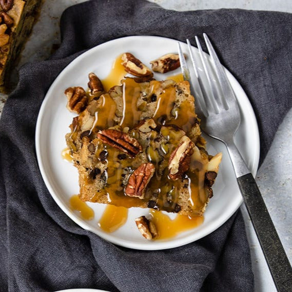 Delight in this “nutty” indulgence! Each bite is packed with buttery caramel cake layered with chocolate, pecans, walnuts, and almonds for the ultimate sweet-savory treat.